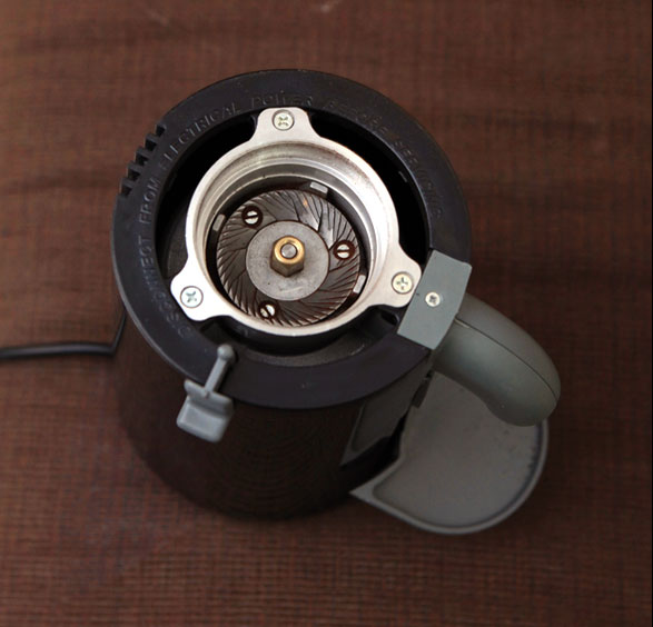 Di bagian bawah terdapat sekrup kecil yang bisa diputas kiri kanan untuk menyesuaikan waktu giling kopi. Nah di bagian penting ini saya sedikit bermasalah dengan sangat sensitifnya perubahan waktu yang dihasilkan walau hanya digeser sekian milimeter. Lonjakan perubahan bisa berubah dari 5 detik hingga 25 detik walau sekrup hanya digeser sedikit saja.