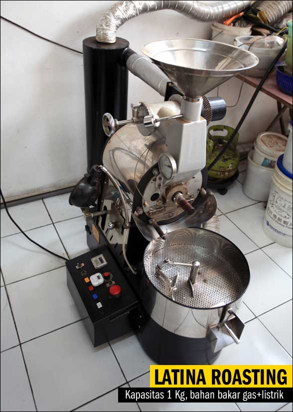 Setengah bercanda saya mempertanyakan kenapa Maharaja menamakan produk-produknya dengan nama “Latina” yang entah selalu mengingat saya kepada genre film “kenikmatan sesaaat” itu 🙂 Tapi sudahlah, yang jelas merek ini sudah banyak dikenal dan tentu saja membawa hoki kepada Kasmito termasuk mesin sangrai kopi dengan kapasitas 1 kilogram ini yang kemarin sore digunakan untuk me-roast kopi.