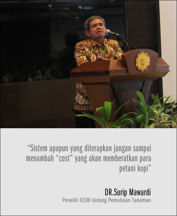 Kembali pada isu Indikasi Geografis, saat ini baru terdaftar Kintamani dan Gayo, harus segera ditindaklanjuti kekayaan kopi Indonesia yang tersebar dari Barat hingga Timur Nusantara. Konsumen berhak mempunyai harapan akan kualitas dari produk yang sudah dilabeli Indikasi Geografis. Tapi jangan sampai sistem ini menjadi beban tambahan bagi petani, pesan DR. Surip mawardi saat diskusi dengan para peserta.