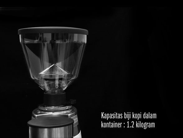 Bean Hopper. Tempat menyimpan biji kopi atau bean hopper dapat menampung sebanyak 1.2 kilogram dan tentu dilengkapi juga dengan sekat yang bisa digeser untuk membuka tutup jalan masuk ke dalam burr. Maksudnya agar pergantian kopi bisa lebih mudah dengan menutup akses masuk biji kopi lalu menlepas kontainer plastiknya.