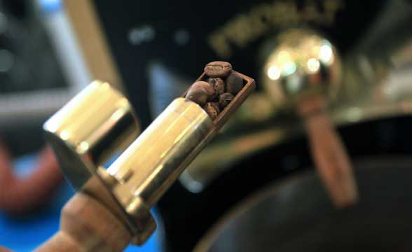 Andaikan saja Probat seorang perempuan, ia pasti memiliki daya tarik atau “sex appeal” kuat untuk dijadikan fantasi “nakal” para roaster kopi. Dipasarkan oleh PT Nutraco Mesindotama yang terus melakukan penetrasi pasar mesin roasting premium dan Probatino kapasitas 1 kilogram-nya menjadi salah satu booth pameran yang banyak dikunjungi pada Interfood 2011 di Jakarta Expo Kemayoran Hall D, tanggal 29 September sampai dengan 2 Oktober 2010. Saya mencoba sendiri mesin yang bsia diletakan di atas meja ini.