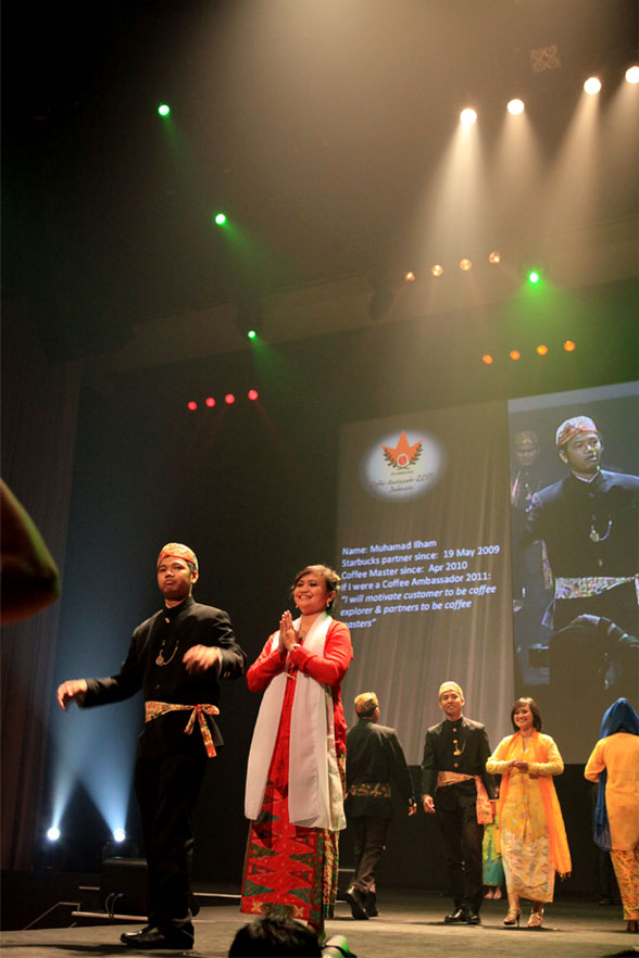 Coffee Ambassador selalu dikemas dengan kemeriahan, komplit denga tata panggung dan lampu sorot layaknya sebuah pergelaran kesenian. “This even is fun and serious” ujar Anthony Cottan, Direktur PT Sari Coffee, dalam sambutan yang membuka acara ini. Berbeda dengan tahun-tahun sebelumnya, seluruh karyawan Starbucks yang hadir mengenakan busana Betawi sebagai pengingat kota Batavia yang dulunya menjadi pintu ekspor kopi ke seluruh dunia.