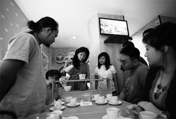 Kira-kira seputar itulah diskusi yang dilakukan di antara peserta. Tentu saja setiap peserta punya pandangan tersendiri dan sekali lagi menurut Mia masing-masing cara seduh punya karakter tersendiri dan terserah kita ingin mencari rasa seperti apa sesuai dengan alat yang digunakan. Di samping itu kedelapan peserta bisa menentukan cara mana yang lebih sesuai dengan kebiasaan mereka mengkonsumsi kopi.
