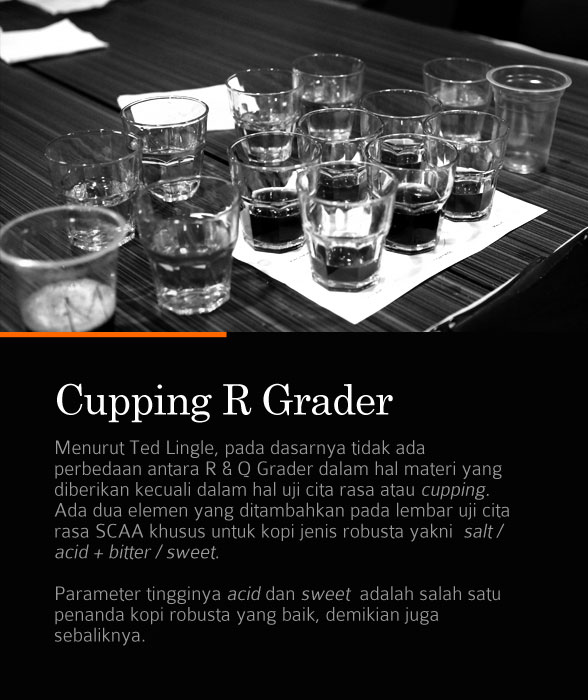 Orang hebat ini sedang berada di Jakarta dan menjadi instruktur pada kelas R Grader pertama di Indonesia (ke-6 di dunia) yang berlangsung dari tanggal 14-19 November 2011. Suasana kelas agak “sedikit” berbeda dengan apa yang sudah saya saksikan pada Q Grader di Bali minggu sebelumnya. Di sini peserta tampak lebih santai dan menikmati penjelasan Ted yang langsung menyentuh ke akar permasalahan. Ted orang yang sangat ilmiah, tapi penjelasannya mudah dicerna, tanpa perlu banyak mengumbar terminologi asing dengan pembawaan dan gaya bicaranya yang halus.