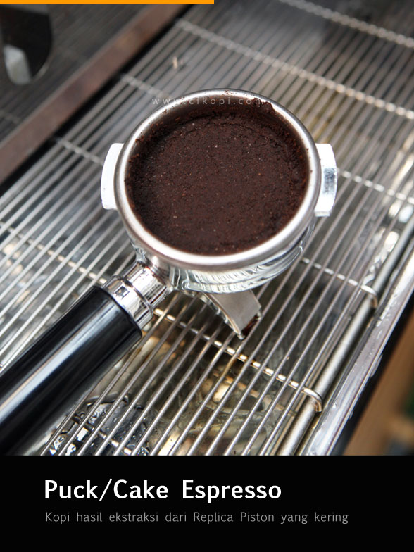 Selanjutnya kami mencoba menarik lever, tapi langsung melepaskannya kembali atau tanpa melakukan pre-infusion. Baru beberapa kali mencoba saja kami melihat bahwa mesin dengan sistem lever seperti Replica Piston sungguh unforgiving, sedikit kesalahan dosing, tamping dan sedikit slip saat menarik tuasnya langsung menampakan hasil yang mengecewakan. Tapi bila semuanya dilakukan dengan benar, nectar of God –nya sungguh mempesona. Baiklah, kami hanya menghabiskan satu malam dengan mesin ini dan perlu banyak berlatih untuk membiasakan dengan sistem lever, apalagi suhu air di brew head yang mestinya bisa dilihat dengan menggunakan alat khusus seperti thermofilter.