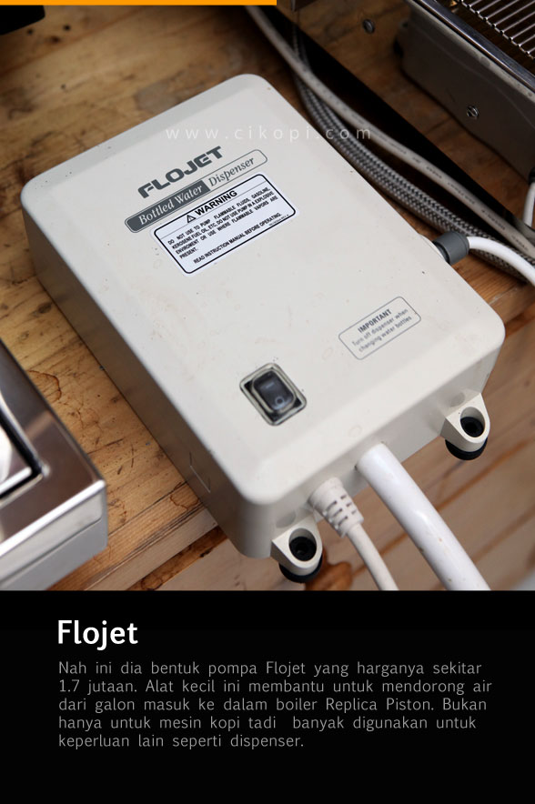Setelah memasang Flojet dan menyambungkan pipa ke galon air, sekitar setengah jam waktu yang dibutuhkan oleh Replica Piston untuk siap digunakan. Manometer menunjukan angka 1 bar untuk tekanan boiler dan saya yang ditemani oleh rekan Hendri Kurniawan, Andi Kho, Charli Aziz dan beberapa teman yang lain segera mencoba mesin ini.
