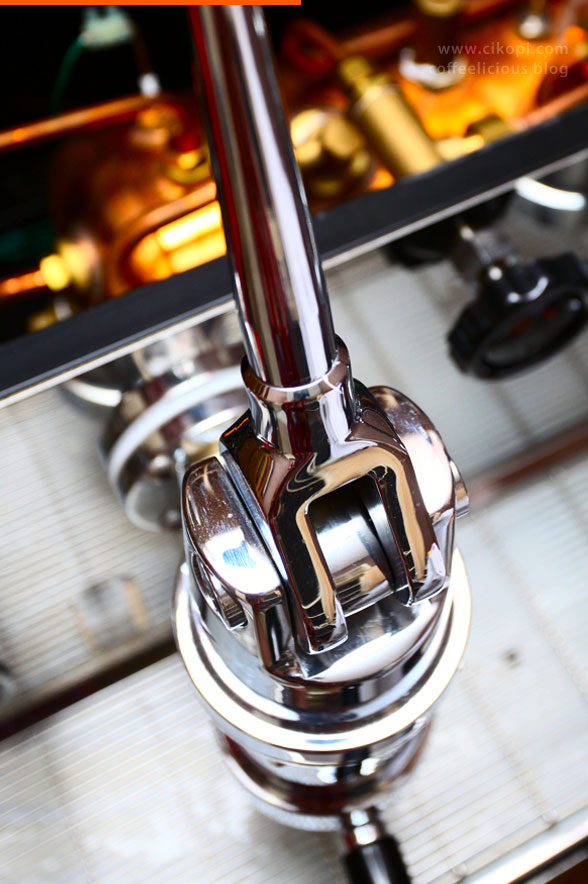 Vibiemme Replica sistem piston seperti halnya dengan keluaran produk perusahaan ini selalu mengandalkan desain klasik dengan busana stainless steel yang mengkilap (dan membuat saya susah memfoto tanpa refleksi). Dari atas, pemanas cangkir menggunakan sistem pemanas terpisah, tapi bisa dilepas bila udara panas dari boiler sudah dirasa cukup.