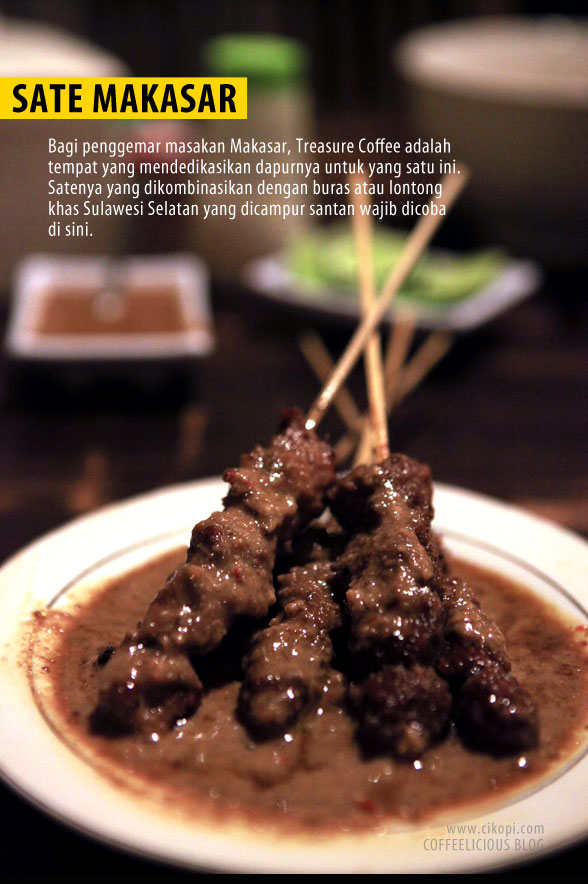 Treasure Coffee dedicates its kitchen in producing the best Makassar culinary. The satays that are served with buras or lontong (rice cakes) and coconut cream is very South Sulawesi in taste and it’s worth-trying.