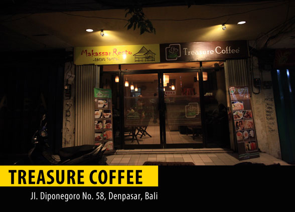 Tak terhitung warung kopi yang terdapat di Bali, namun bila ingin menemukan suasana lain, tapi dengan kopi pilihan, Tresure bisa dijadikan pilihan. Apalagi bagi penyuka masakan Makasar, Treasure menyediakan berbagai jenis kuliner seperti coto, sate, atau iga bakar. Jadi lengkap sudah konsumsi kafein yang dikombinasi dengan masakan pedas dalam kebersahajaan di warung kopi milik Ferdee yang tak lama lagi akan menggoreng kopinya sendiri.