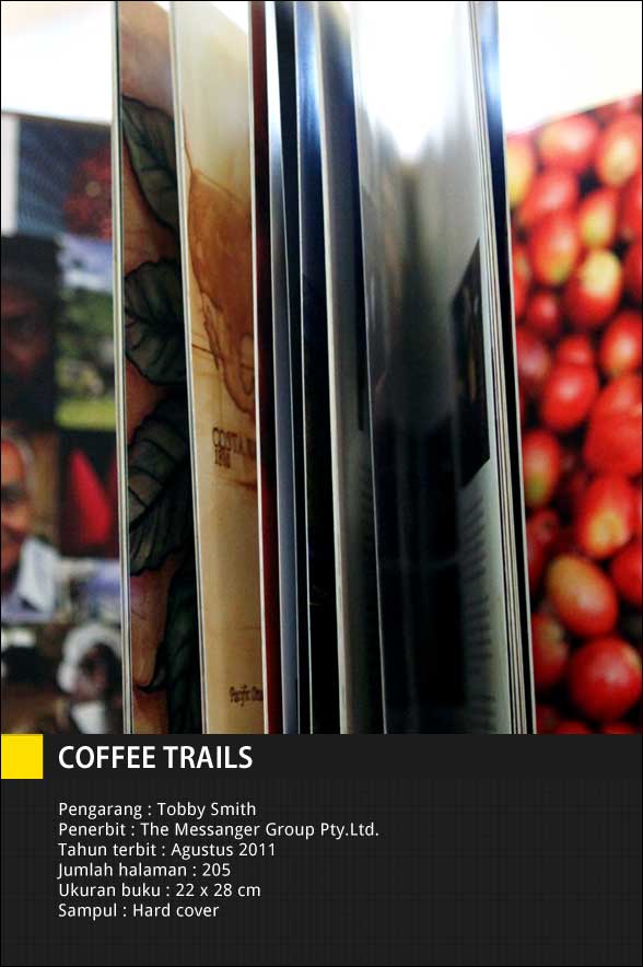 Sebelas negara penghasil kopi termasuk Indonesia yang dirangkum dalam sebuah narasi sepanjang 205 halaman. Itulah Coffee Trails sebuah buku tulisan Toby Smith pemilik Toby’s Estate di Australia yang juga menyediakan pelatihan barista dan roasting serta cupping. Membaca halaman demi halaman Coffee Trails yang dibawakan dari sudut pandang penulis sendiri seakan diajak menemani sebuah perjalanan maha panjang panjang dari crop to cup di berbagai belahan dunia produsen kopi.