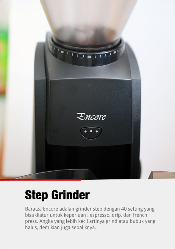In music concert terms, Encore means an additional performance by the musician(s) after the event is finished which is fulfilled based on the audience’s demand; a sign that they really enjoy the presentation of the performance. Maybe it was Baratza’s intention to name its grinder Encore, aside from it being easy to use but also has a pretty good performance, I am glad that finally Baratza is available in Indonesia.