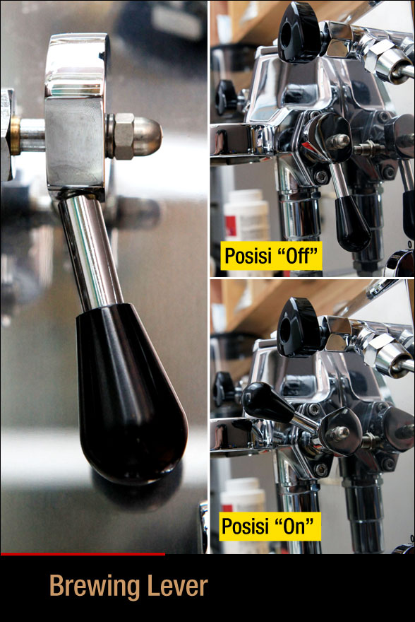Untuk kepraktisan saya menggunakan sumber air yang terdapat di dalam mesin dengan mengisinya sebanyak 1.5 liter. Sebagaimana yang sudah saya katakan di atas, saat air di dalam tangki kosong maka secara otomatis Vibiemme mematikan sistem kelistrikan untuk mencegak kerusakan pada bagian pemanas di dalam boiler akibat kekurangan pasokan air. Lalu tomobo power dinyalakan dengan memindahkan ke posisi “I” dan pompa mulai menarik air ke dalam dua boiler yang berlangsung kurang dari satu menit. Untuk memastikan air sudah berada di dalam boiler saya mengangkat tuas brewing dan mengalirkan air ke dalam group head untuk pertama kali, sebuah proses yang dinamakan priming. Selanjutnya pindahkan switch power ke posisi “II” dan pemanas akan mulai bekerja beserta indikator suhu yang perlahan naik sesuai dengan suhu yang bisa diatur dengan menekan tombol “P”. Hanya sekitar 20 menit Vibiemme V3 sudah siap digunakan.