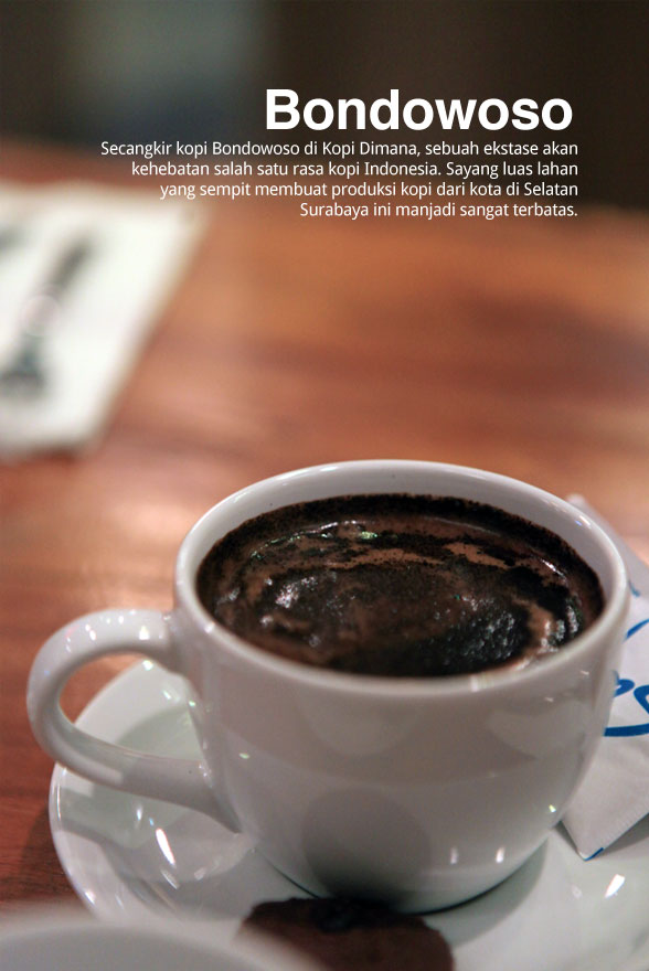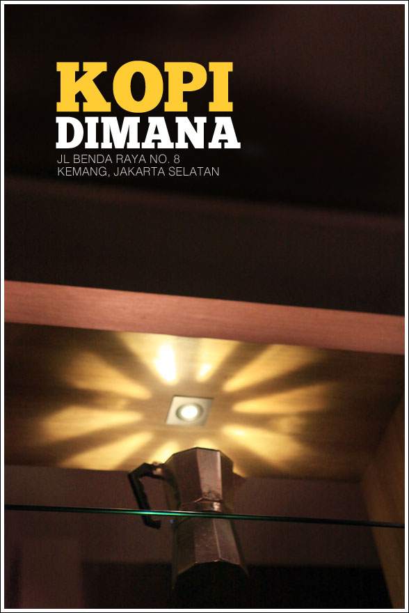 Bagi Anda para penikmat kopi Nusantara, mungkin bisa menjajal sajian Kopi Dimana, sebuah tempat untuk menikmati kopi Indonesia secara lebih khusyuk. Ary berusaha menyediakan kopi dari berbagai daerah dari Aceh Gayo hingga Papua yang kesemuanya bisa diracik dengan berbagai alat seduh manual yang terdapat di sini. Selain kopi mainstream, ternyata biji kopi Bondowoso pun tersedia di sini, varian kopi dari daerah Jawa Timur yang tampaknya semakin mentas walau saya sangat jarang menemukan di warung kopi yang lain.