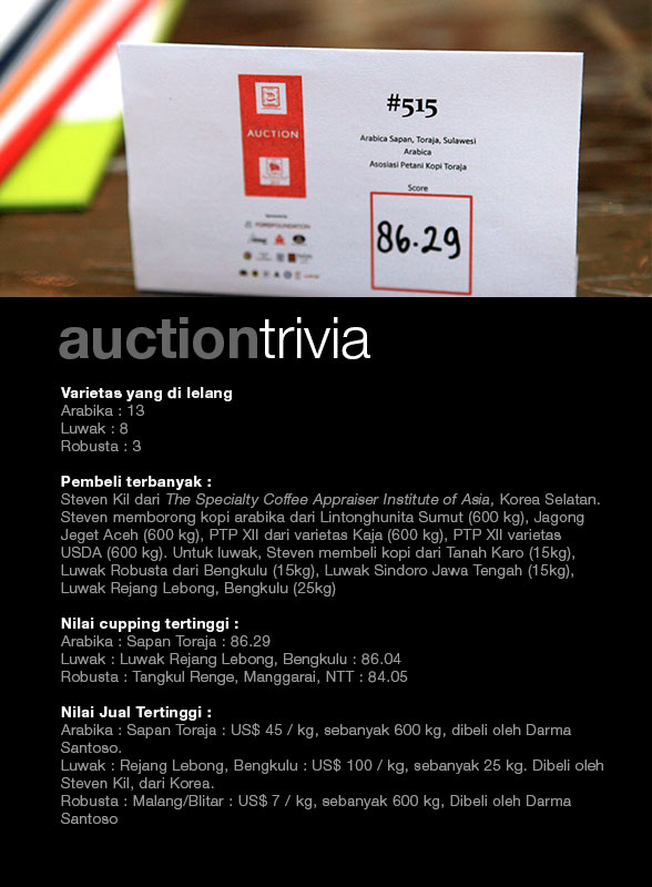 Kedua, walaupun masih minim, keikut sertaan industri hilir dalam acara Lelang adalah fenomena yang menggembirakan dan semoga akan lebih banyak lagi para cafe yang turut meramaikan acara lelang di dua tahun yang akan datang.