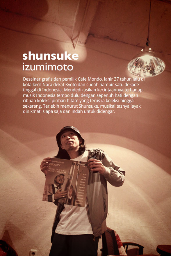 Orkes Melayu pimpinan Saiful Bahri sedang melantunkan lagu Semalam di Malaya yang dibawakan oleh artis Tuty Daulay yang diputar dari sumber piringan hitam. Sebuah komposisi klasik dari repertoire kelompok musik Melayu Deli yang tak pernah lekang oleh waktu ini. Sambil menikmati secangkir kopi panas bersama beberapa rekan yang lain, Cafe Mondo yang terus memutar beragam lagu Indonesia tempo dulu secara perlahan menyajikan atmosfir yang mengajak pengunjung untuk melakukan napak tilas sejarah musik Indonesia. Lebih hebat lagi, kurator musiknya adalah Shunsuke Izumimoto (37) waga Jepang yang punya koleksi ribuan piringan hitam khusus lagu Indonesia yang mungkin sudah layak masuk “Wall of Fame Indonesian Greatest Music””
