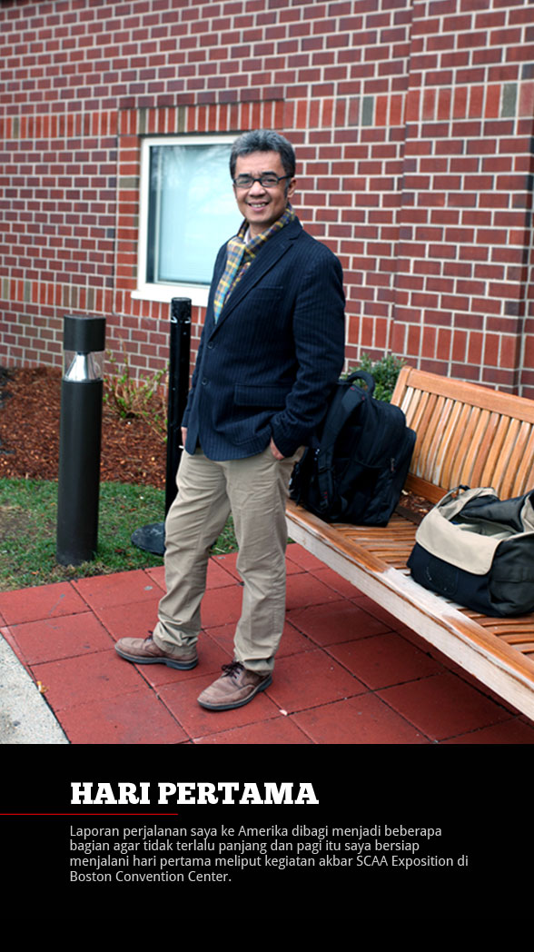Untunglah kali ini nama ala “jihadis” seperti saya tidak harus melewati secondary check, saat orang-orang dengan nama “indah” lainnya harus meladeni pertanyaan petugas Homeland Security di ruangan khusus. “You’re set” kata perempuan kulit putih sambil menyerahkan paspor yang sudah dicap izin tinggal selama enam bulan. Maka mulailah perjalanan saya selama 9 hari di tanah Amerika untuk meliput kegiatan SCAA Exposition di Boston Convention Center yang akan berlangsung dari tanggal 10-14 April.