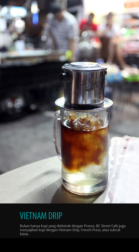 Bila ada orang yang ingin membumikan kopi “specialty” agar harganya terjangkau buat banyak kalangan kalangan terutama anak-anak muda, mungkin Rifka Amanda (30) salah satunya. Idealisme yang ia wujudkan bersama Rully Kristianto (30) teman SMP-nya kini menjadi salah satu “hidden spot” bagi Anda yang kebetulan tinggal atau sedang berkunjung ke pulau Bali dan mencari asupan kafein di tengah malam. BC Street Cafe sebagaimana namanya boleh berlokasi di emperan toko, tapi mereka tak sungkan menggunakan kopi “specialty” dari salah satu pemasok yang sudah punya nama.