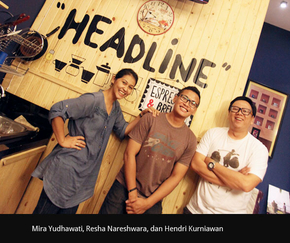 Selalu menyenangkan berbincang dengan Mira Yudhawati (30), ibu seorang anak dan istri dari Resha Nareshwara di cafe milik mereka yang baru saja dibuka sekitar tiga minggu yang lalu, Headline Coffee di kawasan Kemang, Jakarta Selatan. Saya menulis tentang Mira hampir tiga tahun lalu sekaligus mengenalkan prestasinya sebagai cupper di dunia yang begitu maskulin. Bersama suaminya kini ia tengah sibuk menata Headline Coffee yang lokasi tepatnya di Jalan Kemang Utara no. 50, sebuah cafe mungil yang telah mereka cita-citakan sejak dulu.