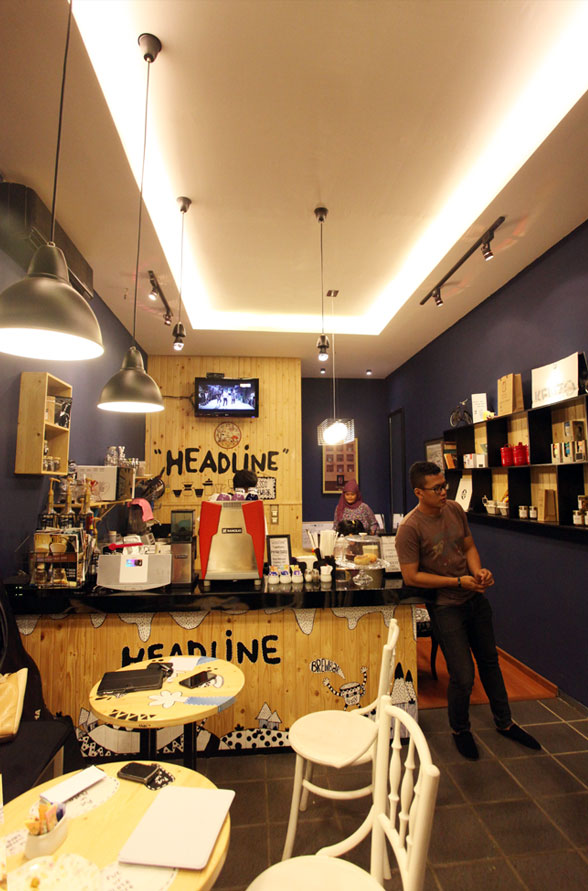 wah design Headline Coffee bagus bgt… saya suka designnya. design berwana kayu dan mejanya uniq, PLUS yang saya suka bgt adalah terangnya tempat membuat org di jalanan penasaran untuk melihat ke dalam dan mecicipi coffee dan makanan ringannya… wajib untuk di kunjungi dalam waktu sesegera mungkin… sukses selalu ya Resha Nareshwara dan Mira Yudhawati. Gob Bless 😉
