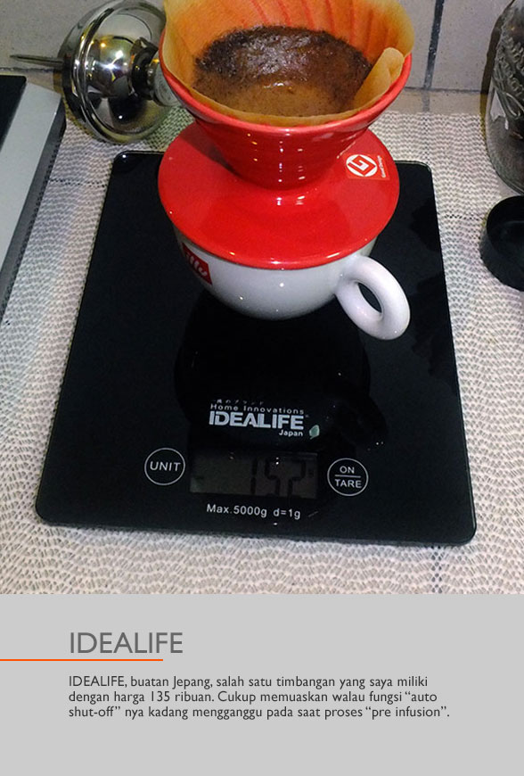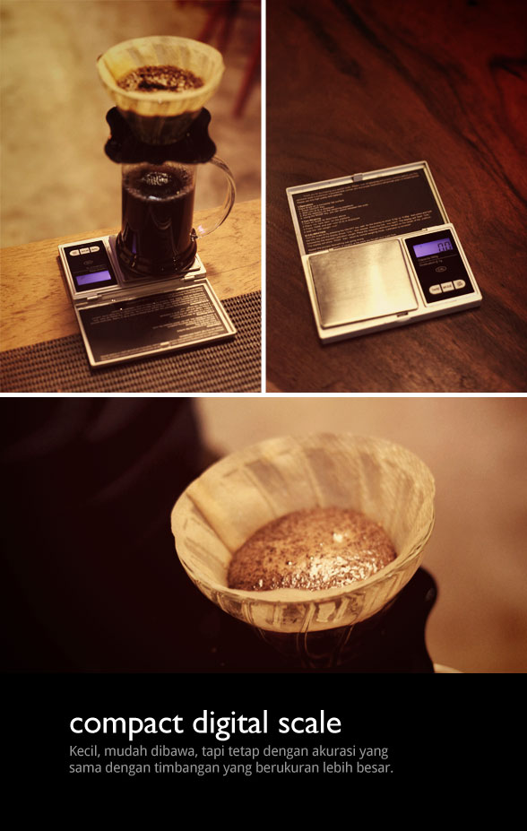 Satu dekade yang lalu saya belum bisa membayangkan bila timbangan digital akan menjadi bagian yang tak terpisahkan dalam proses menyeduh kopi secara manual. Saya masih ingat bila secangkir kopi cukup diseduh dengan dengan menggunakan ukuran sendok makan tanpa perlu melihat berapa berat sebenarnya.
