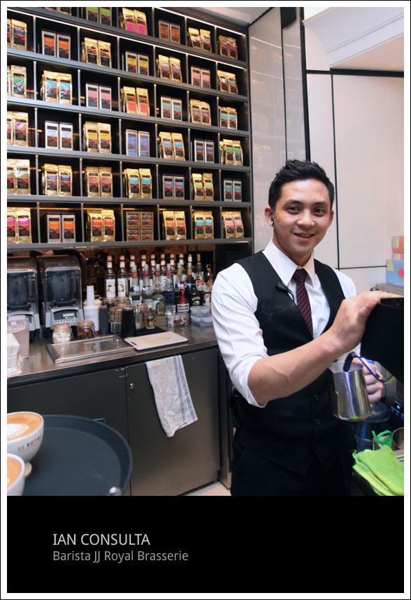 Di JJ Royal Brasserie, Ian bukan hanya piawai berada di belakang mesin espresso Nuova Simonelli edisi WBC dan menyajikan pesanan berbagai menu kopi, ia juga terus mengembangkan ketajaman palate-nya. Sebagaimana sore itu, meja tambahan disiapkan untuk menguji beberapa racikan kopi terbaru dari JJ Royal untuk keperluan internal mereka bersama Joanna Halim, salah satu Q Grader yang dimiliki oleh Indonesia.
