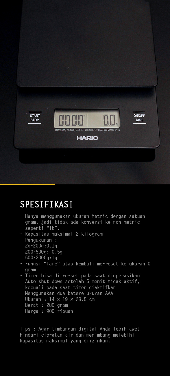 Jadi kesimpulannya, buat Anda yang belum mempunyai timbangan digital, Hario VST-2000 adalah perangkat wajib yang harus Anda miliki. Bagaimana dengan yang sudah memiliki timbangan digital lain ? Kecuali Anda menginginkan fungsi timer, rasanya tak perlu menambah peralatan, apalagi banyak merek bagus di pasaran yang tentunya sudah sangat memadai.