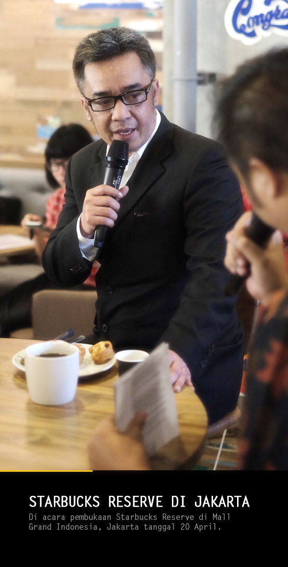 Kini setelah selama 12 tahun perusahaan ini hadir di Indonesia, Starbucks mengenalkan satu gerai spesial yang dinamakan “Starbucks Reserve”, yang menurut press release-nya dikategorikan sebagai ultra premium coffee untuk lebih meningkatkan pengalaman menikmati sajian minuman ini. Saya mendapat kehormatan diundang untuk berbagi pengalaman pribadi tentang Starbucks di hadapan rekan media cetak dan elektronik.