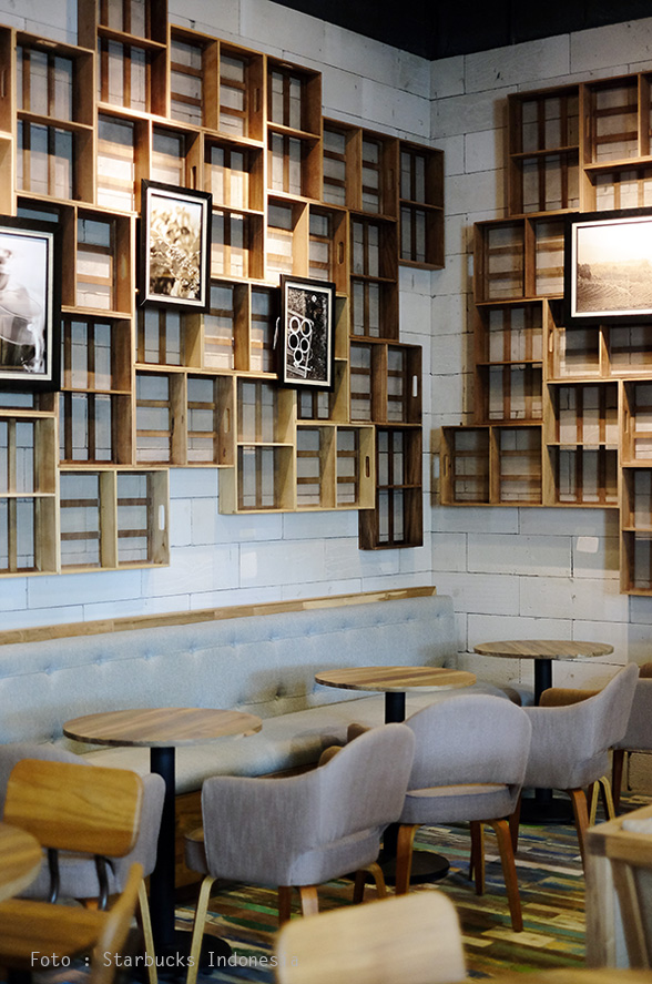 Desain chic Starbucks Reserve Store bisa Anda kunjungi di Mall Grand Indonesia, Jakarta, di bagian West Mall.