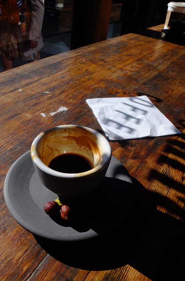 Rasanya bila pemilik coffee shop punya selera yang bagus untuk pemilihan audio dan musik yang diputar, biasanya sejalan dengan rasa kopi dan susana yang ingin dibangun. Mungkin saja saya salah dan pendapat ini tak bisa dijadikan sebuah ukuran. Untungnya tak meleset, dan espresso di Fourbarrel saya nikmati selambat mungkin di penghujung akhir perjalanan di kota ini.