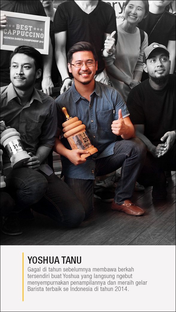 Daryanto yang dianggap sangat kompetitif dan menganggap tantangan sebagai arena pembuktian bahwa bila sesuatu dikerjakan dengan persiapan yang matang hasilnya akan selalu sesuai dengan harapan. Aston yang mampu menerjemahkan konsep bisnis yang ia rancang dengan matang untuk kemudian diwujudkan bersama dua rekannya. Terakhir Yoshua, yang diam-diam melesat ke tengah pusaran kopi spesial di Indonesia dan menjadi Barista terbaik setelah berlatih spartan setelah gagal di tahun sebelumnya.