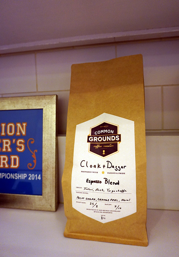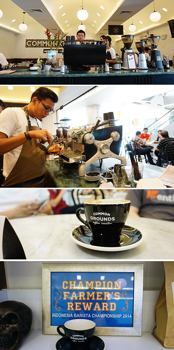 Usianya baru saja menginjak satu tahun dan Common Grounds adalah salah satu testamen perkembangan kopi spesial khususnya di ibu kota. Berlokasi di Sudirman City Walk, di tengah pusat bisnis dan apartemen premium, Common Grounds telah melahirkan dua juara nasional Latte Art dan terakhir kejuaraan Barista di bulan Juni, kesemuanya di tahun yang sama, 2014.