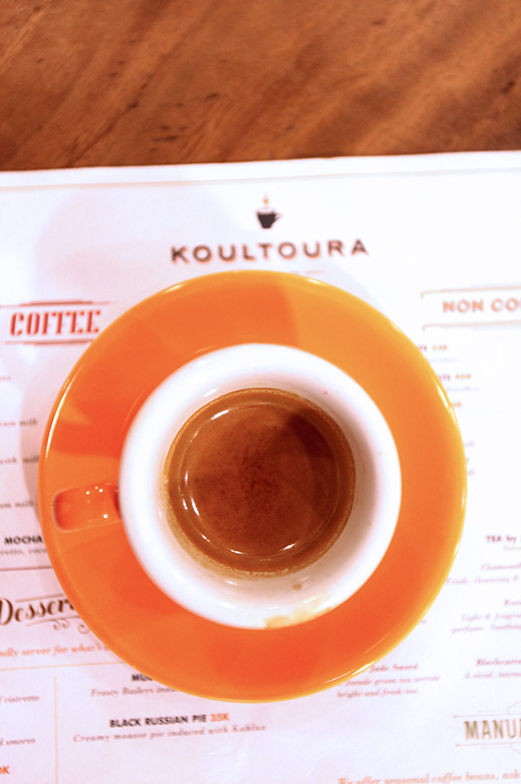 “Kopi yang baik tentunya harus disertai dengan makanan dan layanan yang prima” lanjutnya dan mereka ingin menjadikan Koultoura sebagai “people’s favorite neighbourhood coffee shop”.
