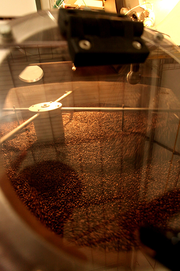 Suhu cukup hangat saat berdekatan dengan drum yang dibelakangnya terdapat sebuah pipa berdiameter hampir satu meter tempat mengalirnya udara panas ke ruang roasting. Seorang pekerja tengah berkonsentrasi memperhatikan panel yang berisikan berbagai indikator berupa suhu ruang di drum, suhu biji kopi, sisa waktu roasting dan berbagai parameter lainnya.