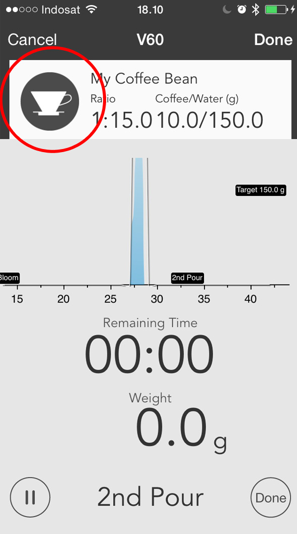 Nah ini yang menarik karena Acaia sudah menyediakan panduan dasar atau “template” kapan harus menuang air, berapa lama waktunya, durasi “blooming” lalu menuang lagi. Penanda setiap tahapan akan diberitahukan melalui bunyi bel dan layar akan menampilkan grafik kesemua proses.