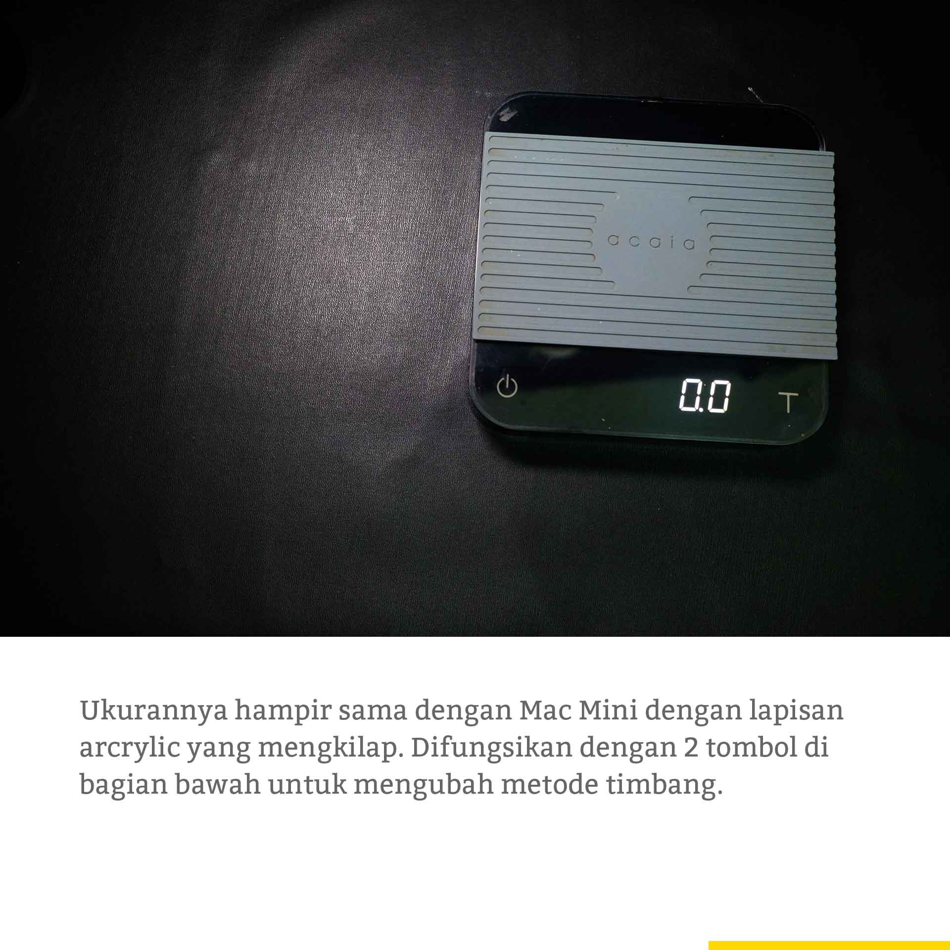 Sebuah projek yang dirintis di Kickstarter akhirnya mulai dipasarkan ke seantero jagat kopi termasuk di Indonesia yang bisa Anda peroleh di beberapa toko on-line. Sejauh mana kemampuan Acaia yang besarnya hampir mendekati Mac Mini ?