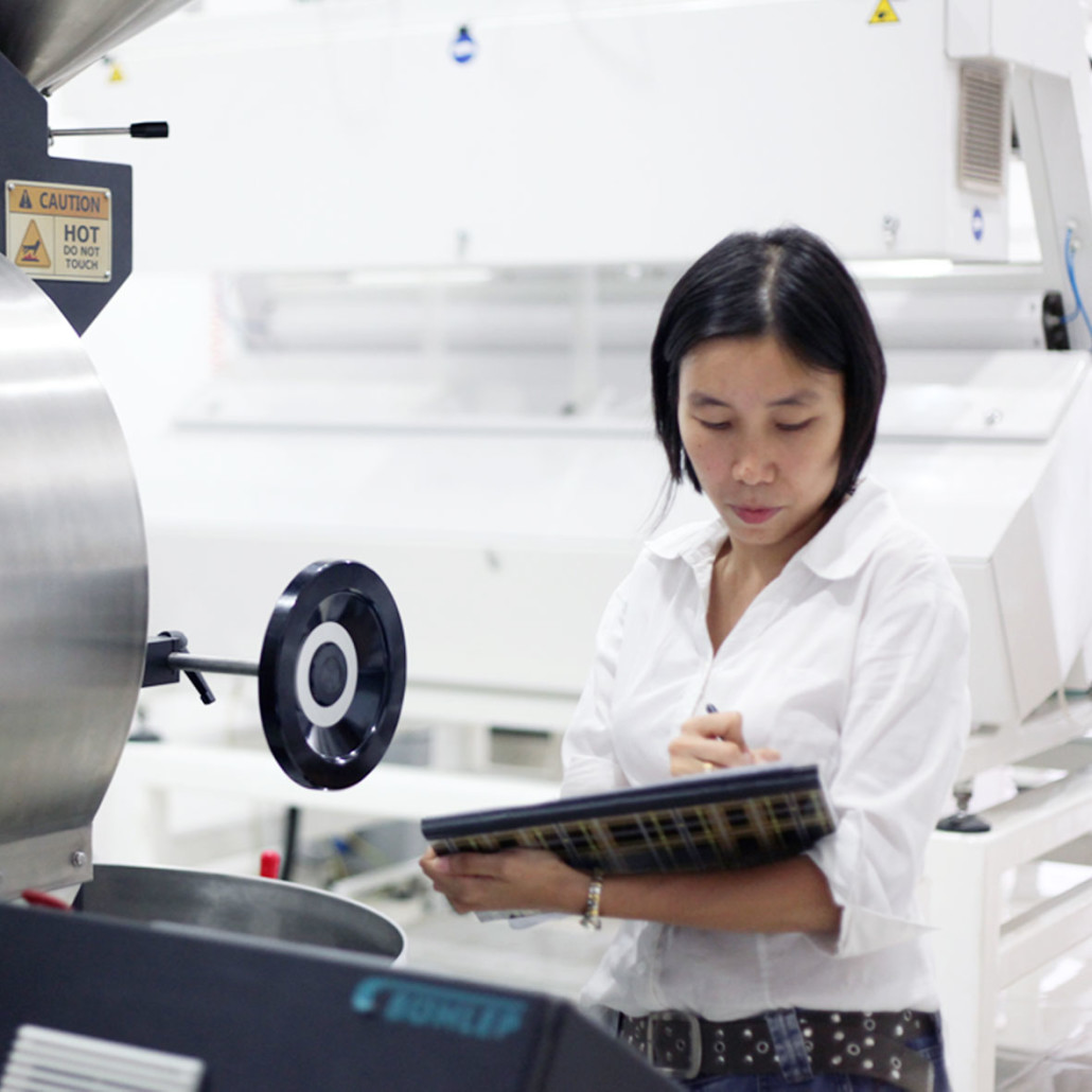 Ervina mulai melakukan pemanasan mesin yang maksimal mengambil waktu hingga 30 menit dan menyiapkan 7 kilogram kopi yang lalu mulai menentukan beberapa parameter di panel layar sentuh. Ia memasukan angka suhu di drum, pengaturan dua tungku api (high/low flame), dan suhu akhir.