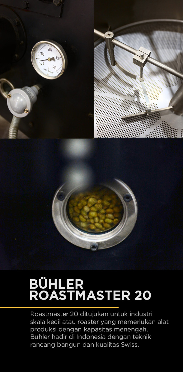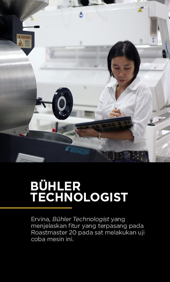 Mesin yang akan dicoba adalah anak bungsu karena merupakan kapasitas terkecil yang diproduksi oleh perusahaan yang telah berusia 1.5 abad dan mampu me-roasting biji kopi antara 60 hingga 80 kg setiap batch-nya. Kapasitas selanjutnya sudah langsung ke skala industri menengah, 60 kilogram, hingga ke industri besar yang tentunya didukung oleh berbagai perangkat otomasi dari Bühler.