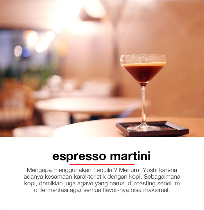 Anda bisa mencoba salah satunya baik dengan menggunakan filter maupun untuk milk based, tapi yakinlah, di tangan Yoshi kopi akan disajikan sesuai dengan standard mutu kejuaraan barista dunia yang pernah ia ikuti di tahun yang sama saat meraih juara pertama se-Indonesia.
