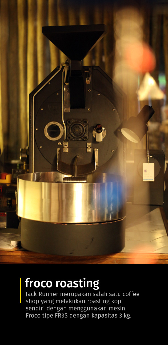 Resmi sebagai tempat yang menyajikan kopi sejak bulan Mei 2014 dan keberadaan mereka dibisiki oleh salah satu rekan di Noah Barn saat saya mencari lokasi peliputan. Jak Runner dikelola oleh Stefanus Handy Hermawan (33) yang pernah mengecap pendidikan di William Angliss Institute, Melbourne, Australia.