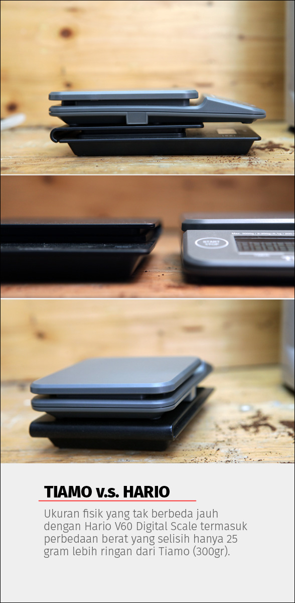 Tiamo tentu tak genit dengan tiba-tiba “tewas” di tengah jalan sebagaimana pengalaman saya dulu punya timbangan yang entah merek apa. Sebuah produk yang saya rekomendasikan selain merek Tanita, Hario, Bonavita, dan Acaia.