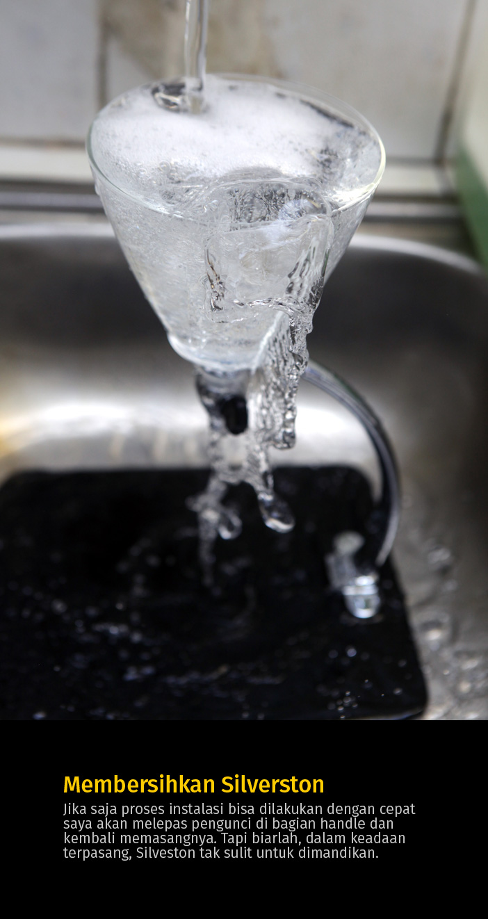 Setelah selesai, langkah elanjutnya hanya tinggal memsangkan filter stainless ke bagian gelas dan Silverton siap untuk digunakan.