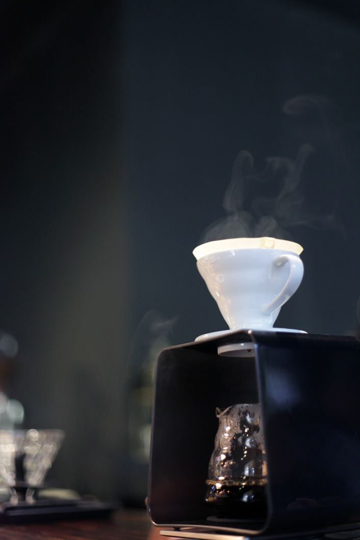 Mesin espresso La Marzocco FB didampingi oleh tiga grinder Mazzer, yang salah satunya raksasa Vulcano Swift yang di desain khusus untuk La Marzocco. Tinggal tekan handle portafilter dan biarkan Vulcano menjalankan tugasnya menggiling dan memadatkan kopi secara otomatis yang hasilnya sungguh aduhai bagusnya.