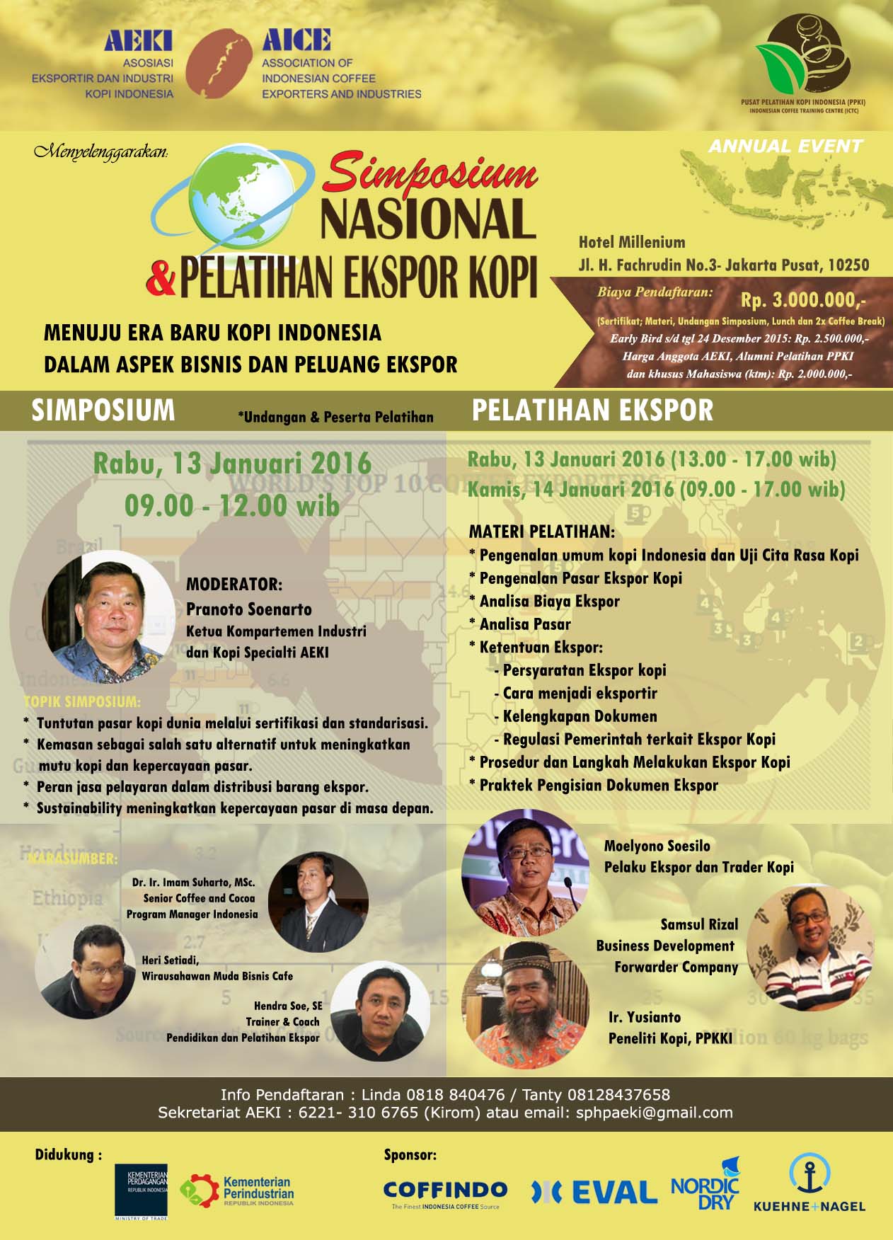 Asosiasi Eksportir dan Industri Kopi Indonesia (AEKI) bersama Pusat Pelatihan Kopi Indonesia (PPKI) akan menyelenggarakan event annual: