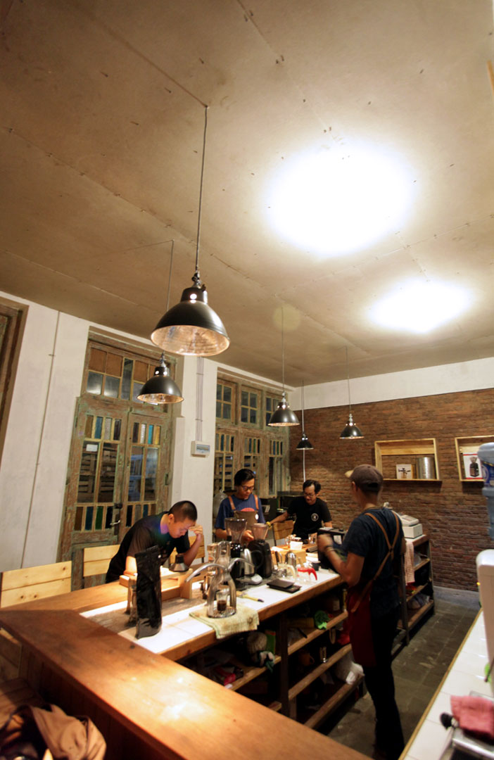 Bagian ruang dalam di desain untuk bar kopi di mana pengunjung bisa bertatap muka dengan dua orang penyeduh kopi, Okky Tryana dan Tejo Bara. Sedangkan di bagian teras, pengunjung bisa menikmati udara “sejuk” kota Bandung yang moga2 masih … sejuk.
