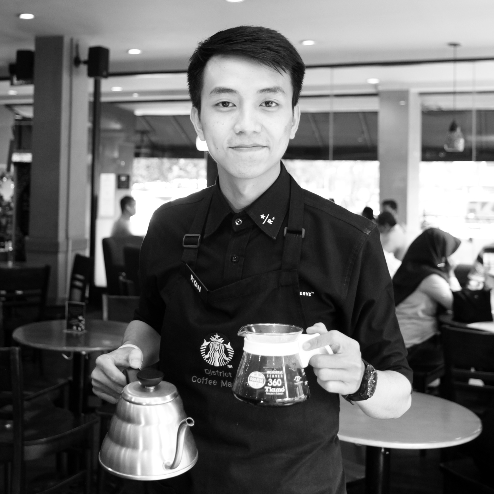 Dengan mentor Mirza Luqman, Training & Development Mgr. Starbucks ia mulai diarahkan untuk terus belajar teknik seduh ini. Ryan dibebaskan untuk melakukan berbagai “manipulasi” dari ukuran bubuk kopi, mengubah suhu air, jenis air, hingga penggunaan berbagai jenis filter kertas.