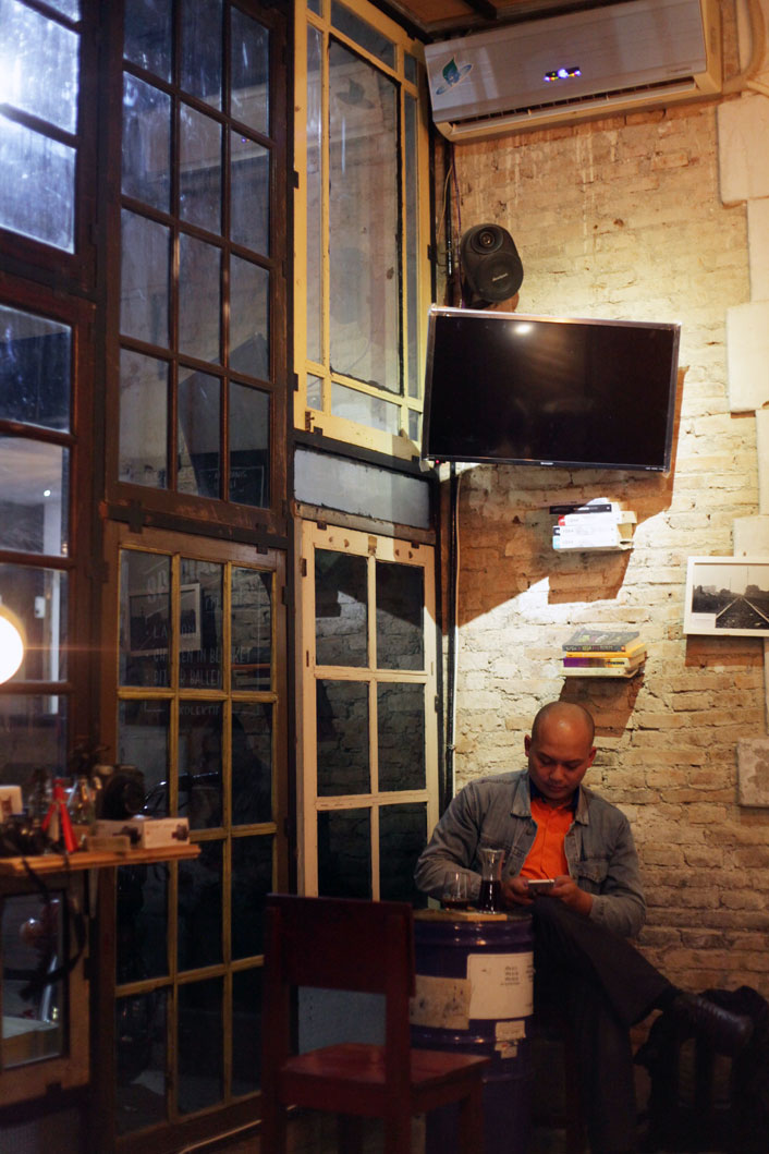 “Saya sedang mempersiapkan sebuah coffee shop di jalan Gudang Selatan” pernyataan itu yang saya masih ingat dan kini niat itu akhirnya sudah ia wujudkan. Saya mengira Rama punya latar belakang pendidikan dibidang interior, tapi menurut pengakuannya, semua desain coffee shop-nya ia kerjakan secara serabutan sebelum akhirnya bertransformasi seperti sekarang.
