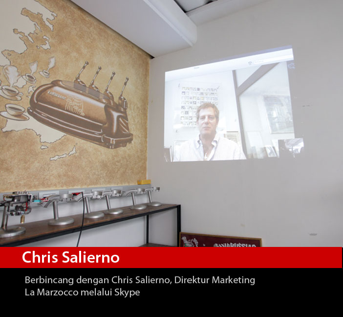 Chris Salierno. Pada hari kedua, saya didampingi oleh Andrea Curtarelli, dengan jabatan sebagai Export Area Manager Middle East, India and Far East Asia. Di sebuah ruangan saya mendengarkan presentasinya tentang dedikasi para karyawan La Marzocco sejak perusahaan ini berdiri hampir 9 dekade lalu.