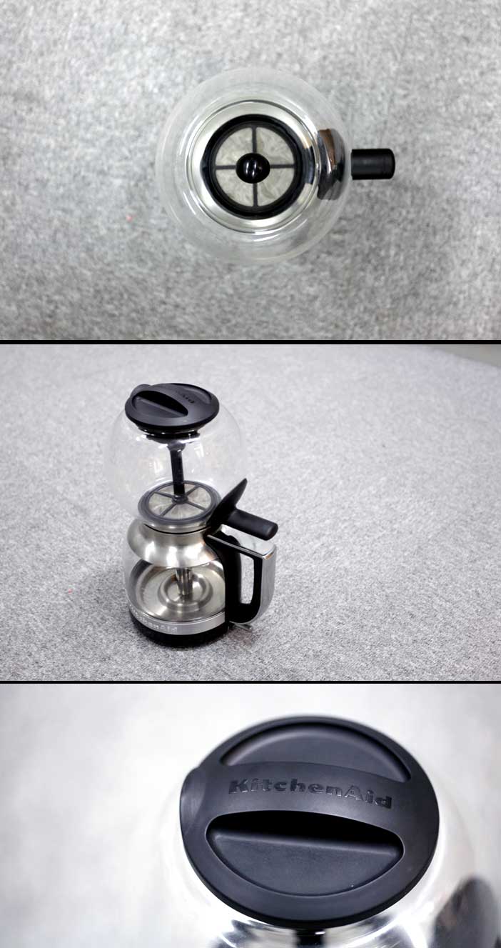 Filter stainless yang bisa dilepas agar mudah saat dibersihkan serta adanya magnet dikedua bagian berwing dan carafe agar tidak terdapat udara yang masuk untuk memaksimalkan tekanan. KitchenAid menyebutnya sebagai “Theatrical beauty and precision”.