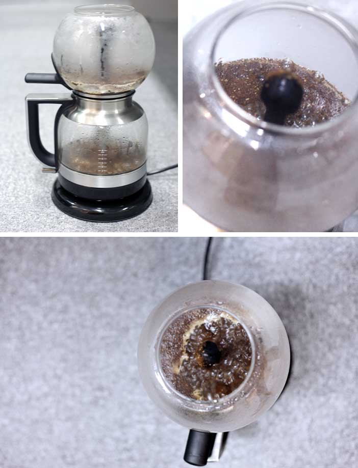 Saya sudah mencobanya untuk 8 cangkir sekaligus dan air sebanyak 1.2 liter sudah mulai mendidih dan naik ke bagian brewing hanya dalam waktu 2 menit saja. Maklum Siphon Brewer melahap daya listrik 1.400 watt, relatif tinggi untuk sebuah alat kopi.