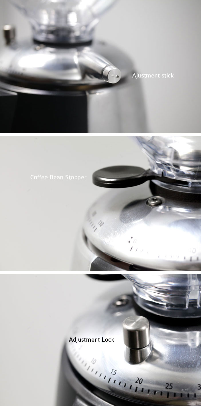 Perbedaan mencolok dengan pendahulunya adalah ketersedian panel atau display elektronik yang salah satu fungsi utamanya untuk mengatur waktu berapa lama waktu menggiling biji kopi. Terdapat tiga timer 1,2, dan 3, yang masing-masing waktunya bisa diatur melalui menu utama. Jadi pengguna tinggal menentukan berapa detik untuk masing-masing angka yang bisa digunakan misalnya untuk basket single, double, atau triple sekalipun.